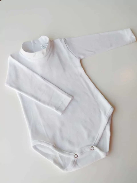 Body de algodón blanco con cuello media polera y detalle de bordado con flores en el mismo tono. Manga larga.